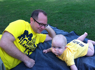 Ollie is getting close to crawling. He already does a sort of "Army crawl", using his face as another arm, but he looks like he is getting closer to a traditional crawl... or maybe he is just a budding yogini with this "downward dog." What do you think?
